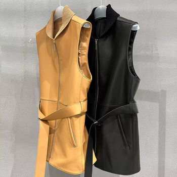 2023 Groothandel Echt Lederen Trenchvest Jas Vrouwen Zwart En Oranje Vrouwen Leren Vest